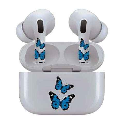 Jaspertronics™ AirSkins - Stylish & Durable Decals for AirPods 3, Blue Butterflies Design Earbuds & Case Skin, Scratch-Resistant, Precision Fit, Wireless Charging Friendly, Easy Application - 58 Designs Available