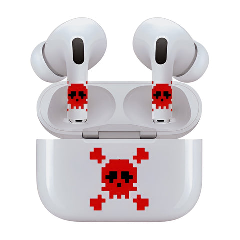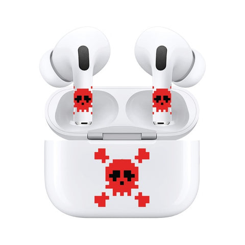 Jaspertronics™ AirSkins - Stylish & Durable Decals for AirPods 3, Red Skull Design Earbuds & Case Skin, Scratch-Resistant, Precision Fit, Wireless Charging Friendly, Easy Application - 58 Designs Available