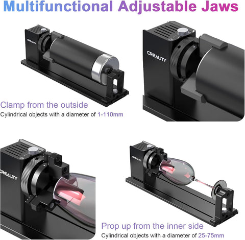 - No Assembly – Plug & Play: Pre-assembled for easy connection. Just attach to your engraver’s Y-axis and start customizing cylindrical objects—one-handed clamping, easy jaw adjustment, anti-slip soft pad.