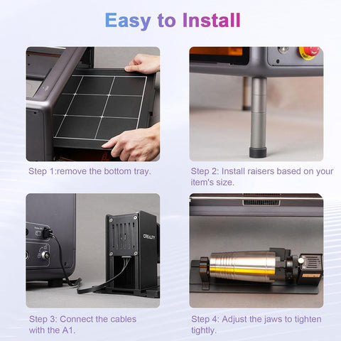 Upgrade your laser engraving with Creality’s easy-to-use, ultra-versatile Y-Axis Rotary Roller Pro Kit. Ultimate flexibility, perfect for hobbyists and pros alike.